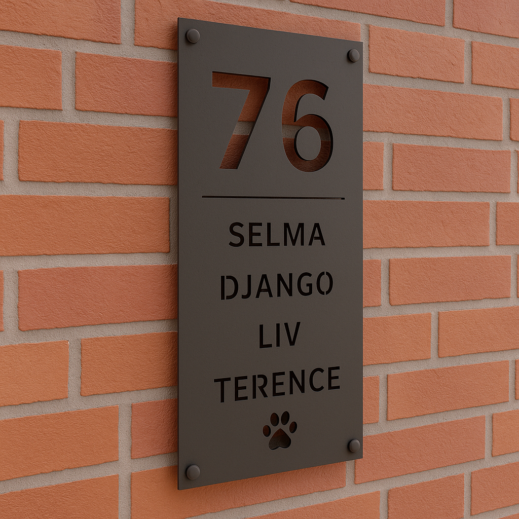 Jetzt auch mit Hunde- oder Katzenpfotenabdruck für Ihren vierbeinigen Liebling erhältlich! Unser Ibiza-Namensschild aus Edelstahl verkörpert das Prinzip der Gastfreundschaft. Es verleiht Ihrem Zuhause einen dezenten und dennoch originellen Look und trägt die Qualität und Exklusivität, die Ihr Zuhause ausmacht, und ist der perfekte letzte Schliff.