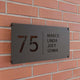 Ons Naambord Prestige Deluxe van roestvrij staal lichaamt het principe van welkom heten. Ons naambordje kan je zelf ontwerpen en uw huis van een sfeervolle en originele uitstraling, en draagthet kenmerk van kwaliteit en exclusiviteit. Kortom de perfecte finishing touch voor uw woning.Het gekozen naambordje heeft een afmeting van 30 cm x 15 cm of 40 cm x 20 cm of zelfs 50 cm x 25 cm met een nettogewicht van 500 - 650 gram.