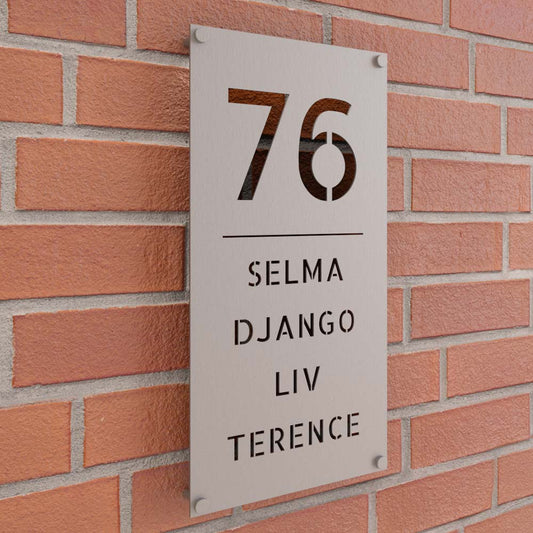Een naambord aan de voordeur is het eerste wat gasten zien – het is het visitekaartje van je huis. Met een stijlvol naambord voordeur van HomePrestige maak je direct een goede eerste indruk. Daarnaast helpt het bezoekers en bezorgers om je woning snel te vinden. Iedere woning en voordeur is uniek. Daarom bieden wij bij HomePrestige een breed assortiment naamborden, huisnummerborden in verschillende stijlen, formaten. Of je nu houdt van modern RVS, klassiek , strak of een luxe naambord, bij ons vind je altijd een ontwerp dat past bij jouw smaak én woning.